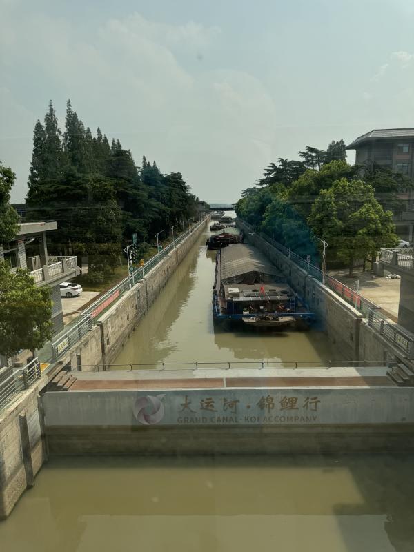 8月5日,小分队前往江苏省扬州市江都区邵伯镇,对著名的邵伯船闸进行了深入的学习调研。抵达邵伯船闸后,小分队受到了船闸管理处的热情接待。在工作人员的细致引导下,成员们有序参观了船闸的主体结构,包括闸室、闸门、启闭设备等关键部位,详细了解了船闸的运行原理和操作流程。通过实地观察,成员们深刻感受到了船闸在保障航运畅通、调节水位等方面所发挥的重要作用,对水利设施的复杂性和重要性有了更加直观的认识。