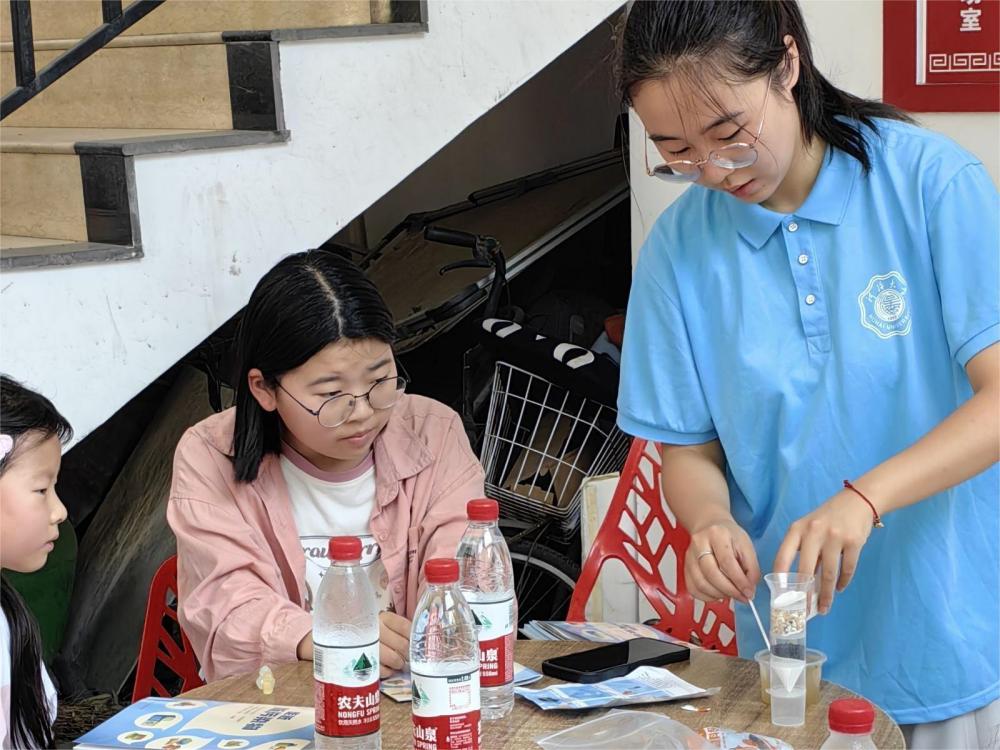 活动开始,成员先就主要水污染来源进行讲解,此后小分队成员将主题引进到如今水质治理,提出了“人人都是小河长”的倡议。最后,李秋慧同学带领村民们制作了水龙头起泡器。
