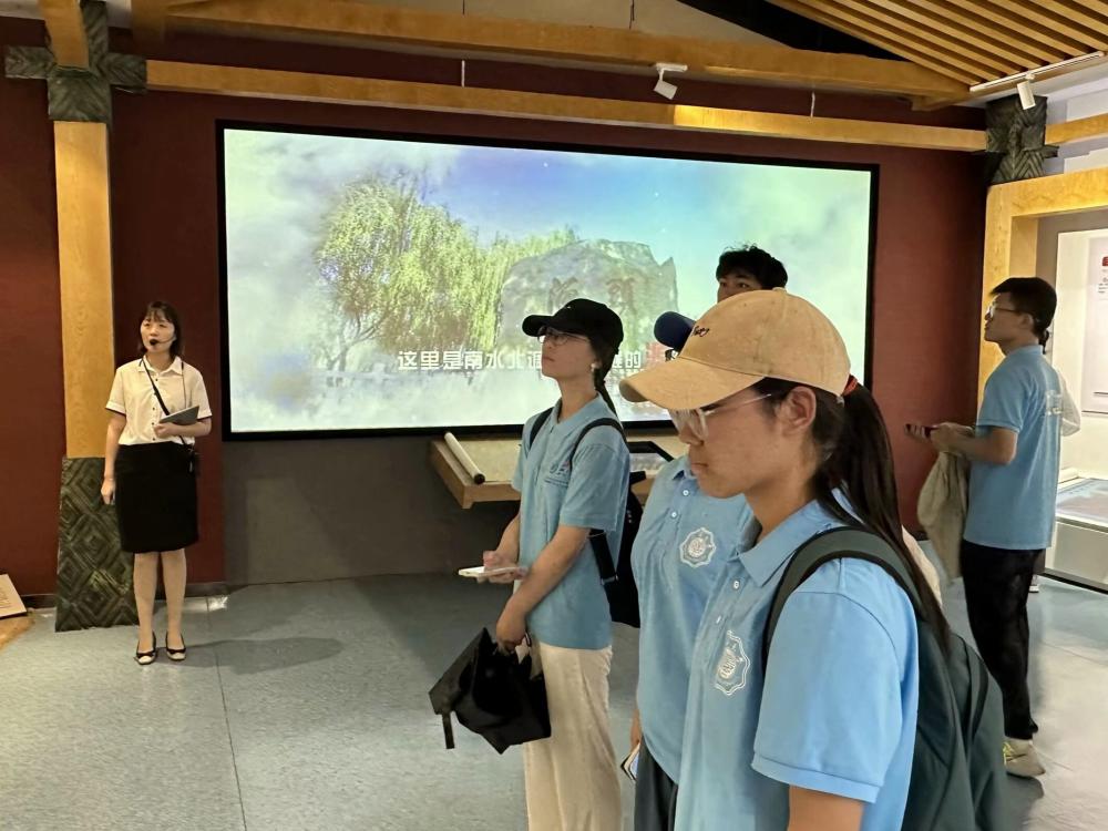 8月2日,实践团进入江都水利枢纽参观学习。在南水北调东线展览馆,通过观看短片和倾听讲解员讲解,实践团成员了解到南水北调东线工程利用了江苏省江水北调工程,从江苏省扬州附近的长江干流引水,利用京杭大运河以及与其平行的河道输水,向天津和胶东地区输水。
