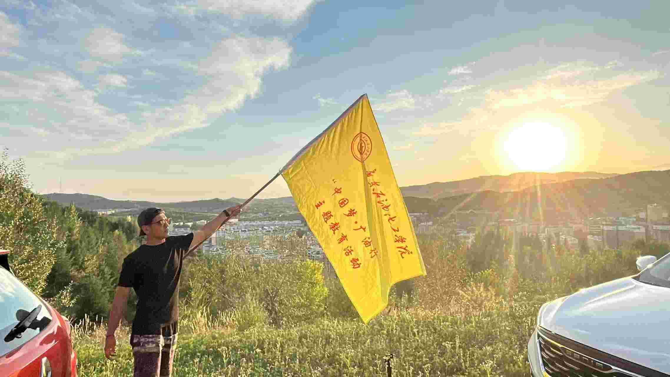 图 1为“疆韵使者”实践队成员在新疆美景之下挥舞旗帜的场景