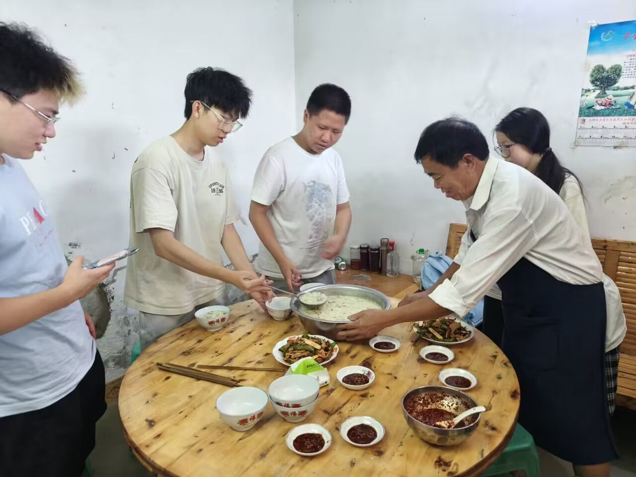 为此,王伯伯特意做了一桌具有当地特色的美味来犒劳下乡暑期社会实践队,与此同时下乡暑期社会实践队也帮助王伯伯进行饭菜的制作。