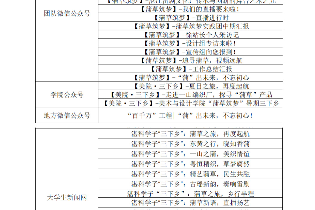 成果,这离不开蒲草筑梦实践团每一位成员的
