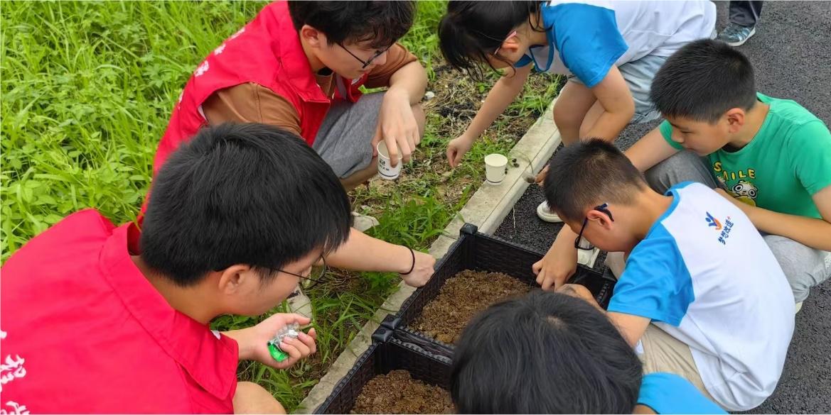 劳动实践,智育田园。一粥一饭,当思来处不易;半丝半缕,恒念物力维艰。在农业知识课上,“智慧菜园”实践团的志愿者们通过图文并茂、生动有趣的PPT,引领孩子们深入探索植物生长的奇妙世界与蔬菜栽培的智慧艺术。“印象最深刻的就是水稻的起源和命名,是我们的科学家通过对水稻基因组变异研究证明了水稻起源于中国。”有小朋友听完分享后说道。在实践活动环节,孩子们被分成三个小组分别种植小葱,小生菜和豆芽菜。在志愿者的带领下,孩子们拿着小铲子与水壶,专心致志的松土挖坑、播种、盖上土壤和浇水,学习劳动技能,体验劳动的快乐。“这次实践也让我们扎根新农村,深入新农业,体验新农人,对劳动精神有了更深刻的体会。”实践团成员如是表示。