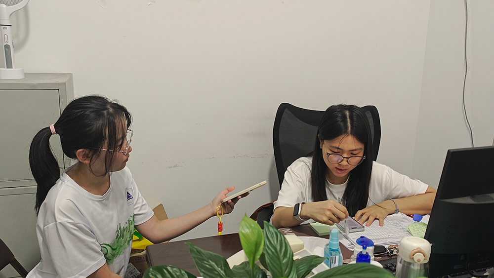 图为小队成员对下乡学姐进行采访。俞海荣 供图