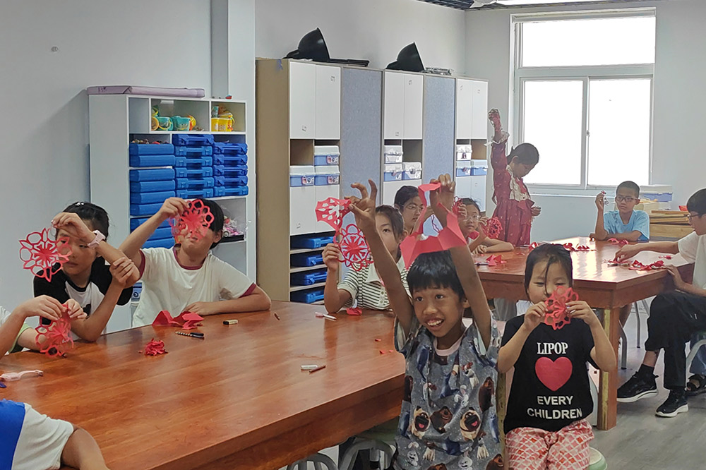 千年传承,匠心独运。非遗技艺如同璀璨的明珠,照亮文化长河。为传承非遗文化,感受中国优秀传统文化的博大精深,缘溪渔公益队为当地暑托班的孩子们带来了一场穿越千年的文化盛宴——中国非物质文化遗产中剪纸与漆扇课程。在课堂上,孩子们了解到了缙云剪纸中阴刻与阳刻的区别,他们用稚嫩却灵巧的双手裁剪出美丽的剪纸作品,还亲自体会了漆扇的制作过程,感受到中华文化的独特魅力。非遗课程点燃了孩子们对传统文化的热情,学会对中华传统文化的尊重与敬畏,更在孩子们心中种下了乡土情怀与文化自信的种子。