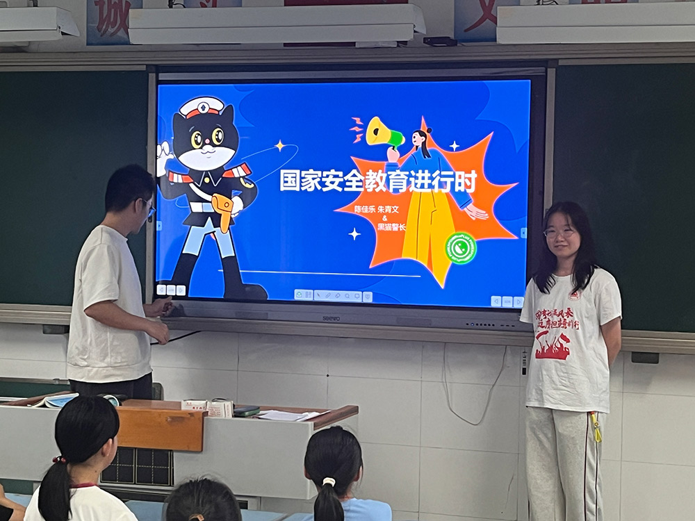 图为团队成员为小朋友们进行国家安全教育。俞海荣 供图