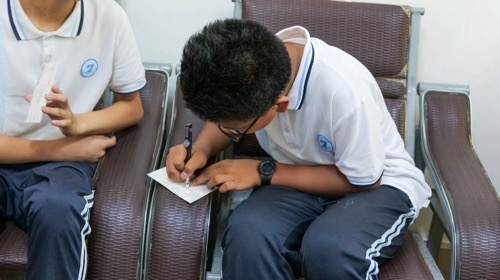 (图为 服务队对学生们开展微心愿)