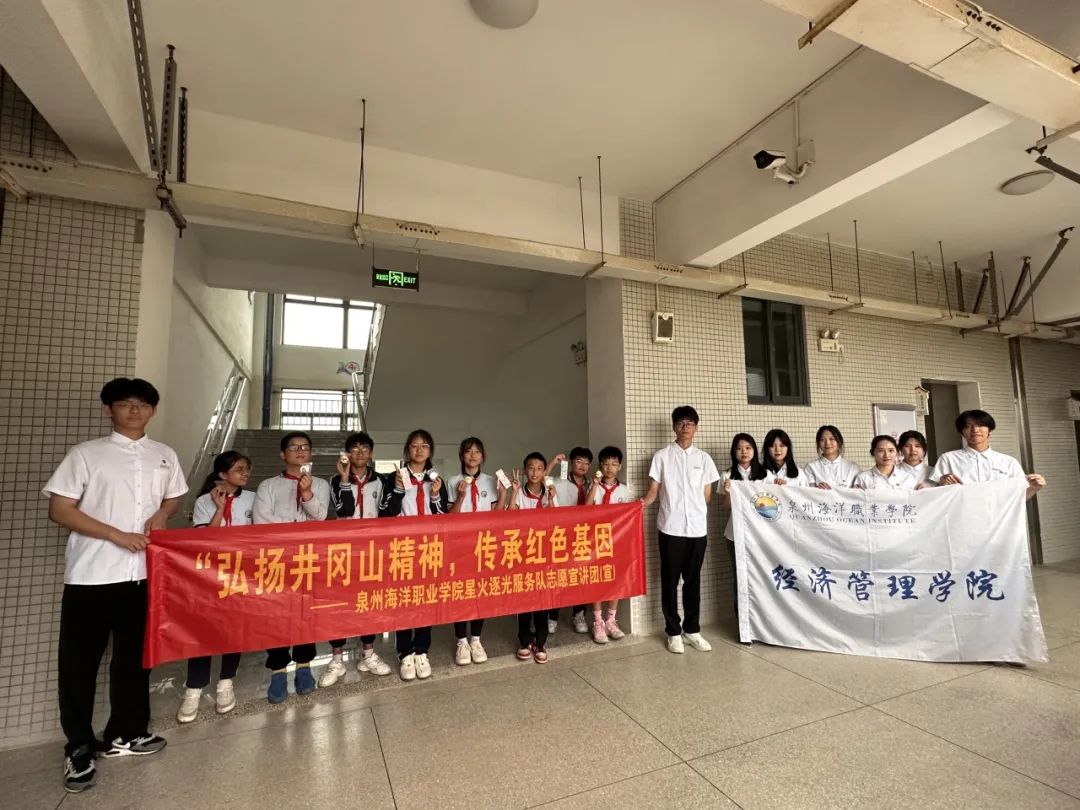 经济管理学院星火逐光服务队志愿宣讲团于6月4日前往泉州师范学院附属小学石狮校区开展以“弘扬井冈山精神,传承红色基因”为主题的宣讲活动。