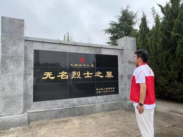接着,实践团来到了相山区烈士陵园。实践团成员自愿为革命先烈擦拭干净墓碑。虽然只有一块块墓碑,但先辈们的爱国精神永远镌刻在民族记忆中,在每个人民的心中。“每一次擦拭烈士墓碑,都是一次心灵的洗涤,更是对历史的深切缅怀。”实践团成员朱思佳有感而发。