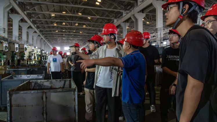 实践队成员在青岛海西重工有限公司参观 严鸿泰摄