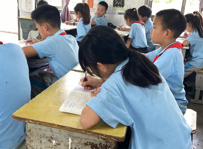 7月4日,调研团成员蔡继泽前往贵州省铜仁市大龙中心完小,经校长邓兴祥引荐,他得以进入班级,给二三年级的小学生发放了精心设计的调查问卷。团队秉持着严谨的调研态度,制作了问卷封面信及指导语。蔡同学也在现场亲切地给孩子们讲述填表注意事项,小学生们填表的时候很是认真。