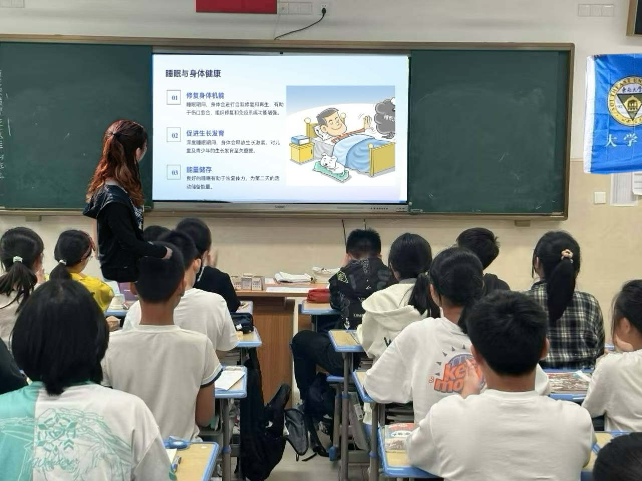 宣讲活动首站选择了一个中学校园——周山河中学,开展“睡眠知识微课堂”,通过贴近生活的实际案例引入睡眠健康知识,激发青少年的参与热情。宣讲结束后,宣讲团成员组织小组讨论,引导青少年分享自己的睡眠体验与学习感悟,鼓励他们将睡眠健康知识融入日常生活,实践中养成良好的睡眠习惯,实现健康生活与个人发展的双赢。