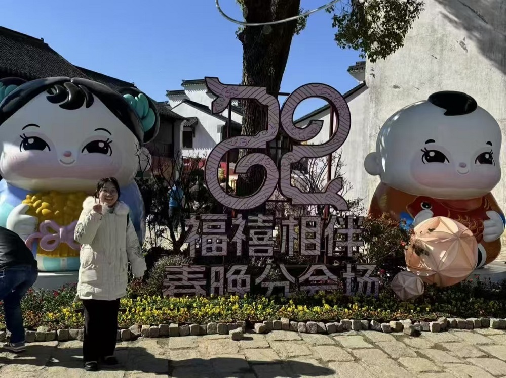 薛晴洁来到了江苏省无锡市被选为2025年春晚分会场之一的惠山古镇,参观了中国泥人博物馆,了解了这项无锡特有的非物质文化遗产。沿着石板路前行,我们可以看见洋溢着快乐的游客们,粉墙黛瓦也被喜庆的灯笼、红色的飘带装饰了起来,无不昭示着新年的来临。