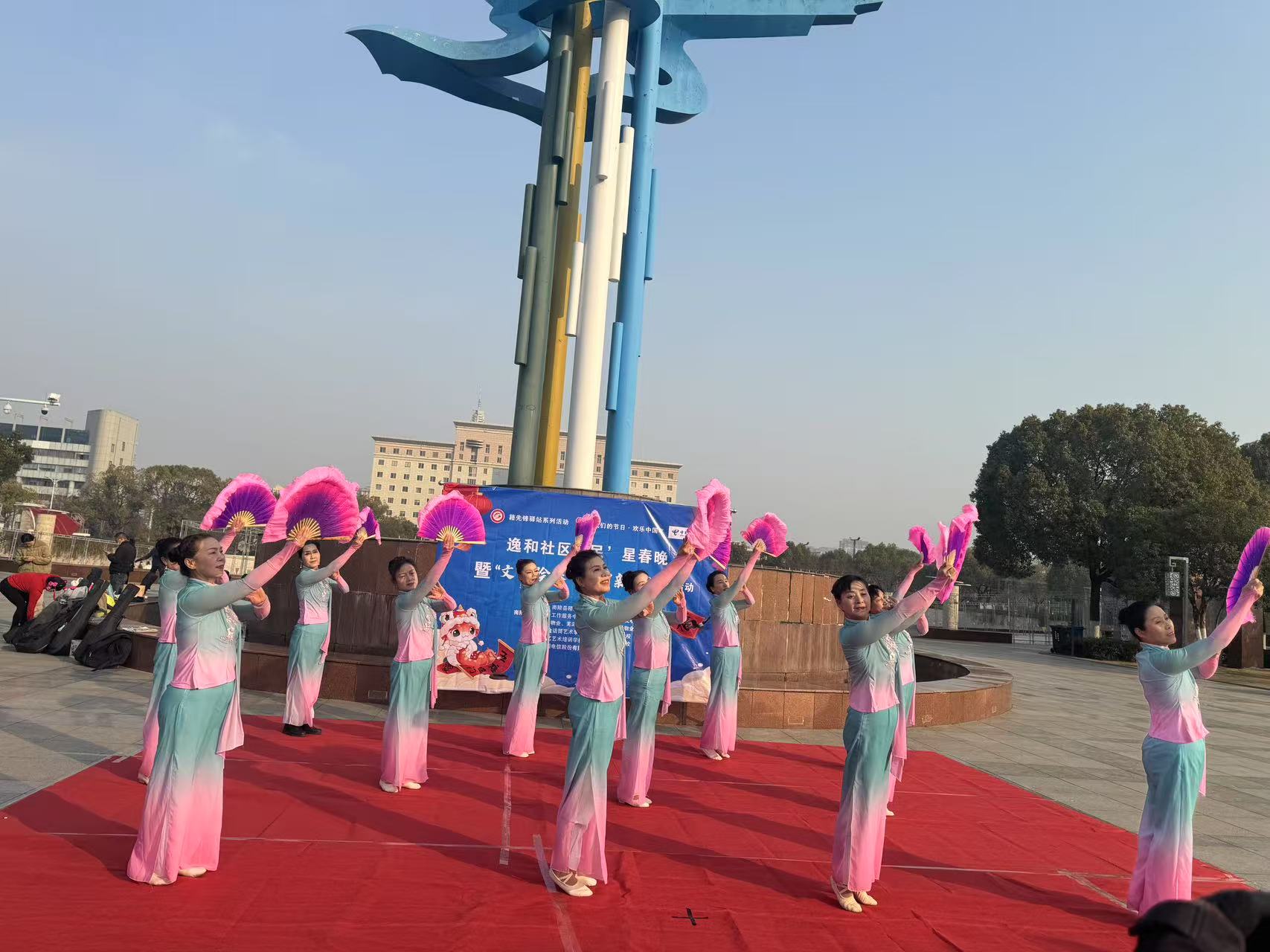 活动当日,社区广场装扮一新,处处张灯结彩。上午10时,活动在一场精彩绝伦的舞蹈表演中拉开帷幕。表演者们身着色彩鲜艳的服装,手持粉色扇子,舞步轻盈灵动,为居民们带来了一场视觉盛宴,赢得了阵阵热烈的掌声。