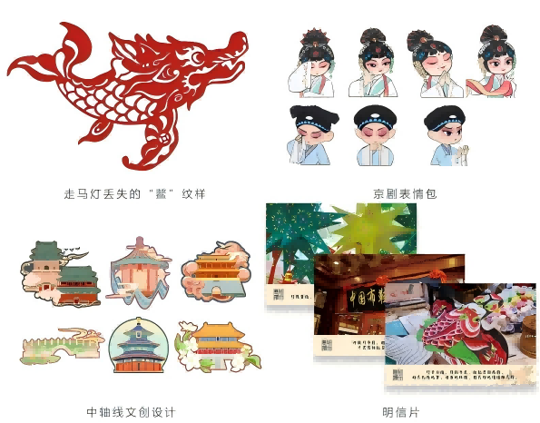 在文化传承的具体实践中,拾文思源实践队结合专业特长,解决传承难题,提出创新方案。实践队帮助传承人恢复丢失“鳌”的纹样,切实解决传承面临现实问题;实践队设计规划了“中轴线·非遗”地图,推动传统文化的可视化传播;还设计了京剧动态表情包,将传统文化融入现代生活;同时也设计了中轴文化特色的纹样图案,开发了文创产品,使中轴文化在现代社会中焕发新的生命力,广泛传播。