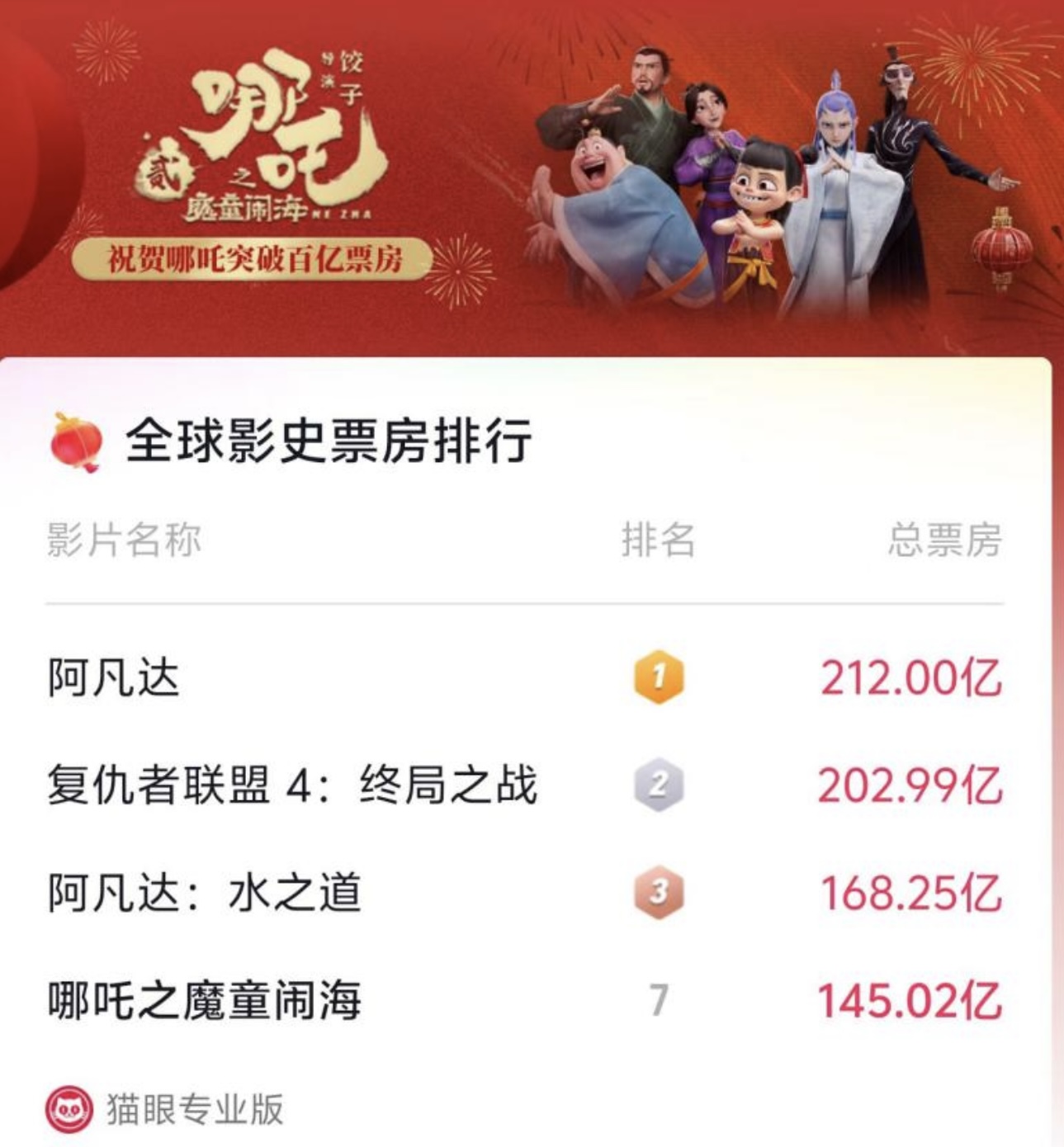图2:热榜国漫电影《哪吒2》的票房最新数据