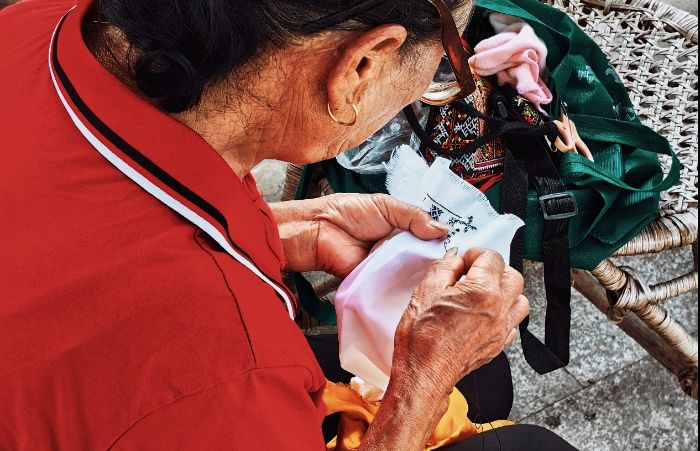 ▲必背镇绣娘反面绣法展示