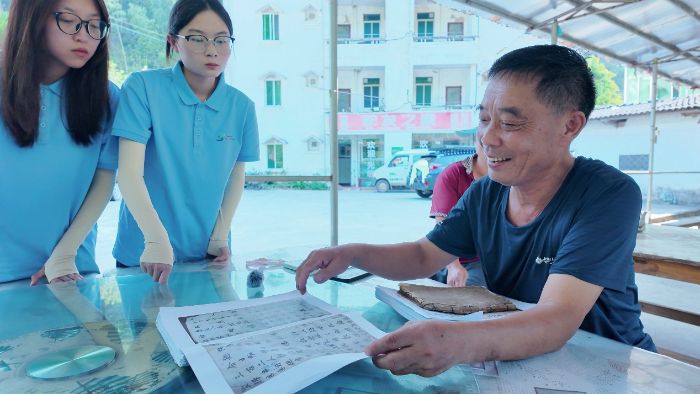 保护非物质文化遗产和红色资源是传承历史文脉、凝聚民族精神的重要举措。为此,突击队专程拜访了瑶族盘王节文化非遗传承人赵良香,围绕过山瑶族文化传承进行专题访谈。赵良香现场展示了祭司吟诵《春耕祝祷词》的仪式:“盘王赐我三分地,春播一粒秋万粒,山风不卷田垄谷,雨水能润苗根基”。通过此次访谈,团队系统了解了瑶族盘王节文化、迁徙史、文化发展轨迹,以及瑶绣、瑶歌等传统艺术传承现状和传统医药、祭祀仪式等内容。