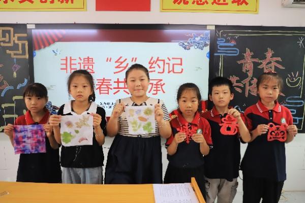 团队成员面向乡村小学开展非遗技艺进校园活动,观看脸谱的变化莫测、体验剪纸的精妙刀工、感受拓印的古老智慧、尝试扎染的创意配色,通过在校园搭建文化传播平台让传统技艺焕发新生机,有效深化了青少年群体对非物质文化遗产价值的理解,增强其保护意识与文化认同。