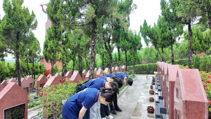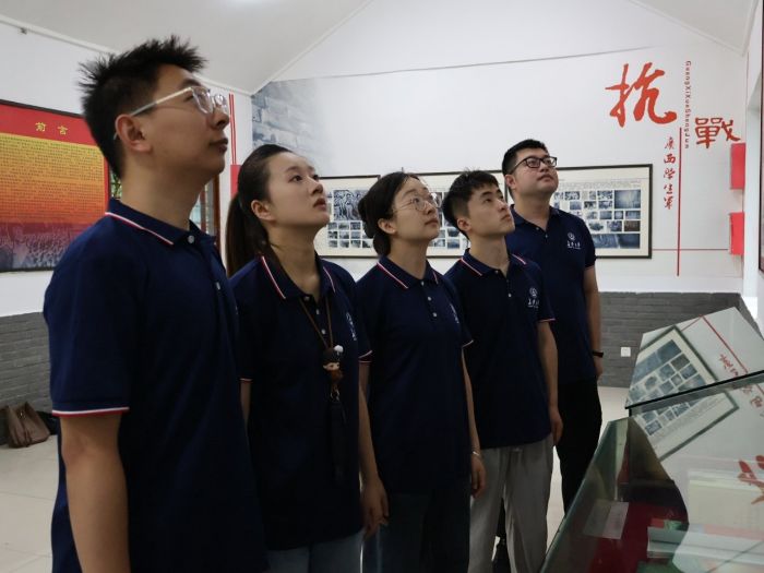 7月21日至22日,实践队先后探访了广西学生军抗日烈士纪念碑、广西革命烈士陵园和邓颖超纪念馆。在蒙蒙细雨中,队员们拾级而上,来到广西学生军抗日烈士纪念碑前。陈列室中那些年轻的面庞、感人的事迹,让队员们深刻体会到“青春何以绚丽”的真谛。