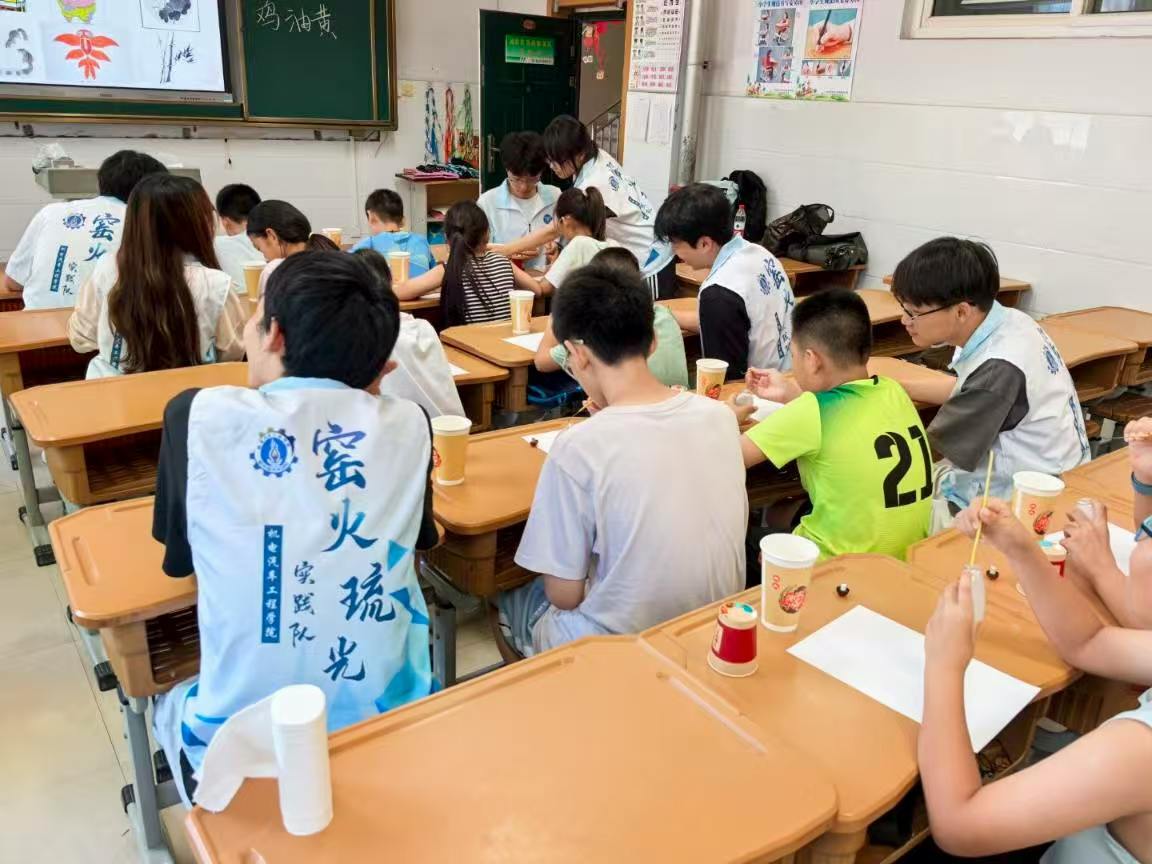第四天上午,实践队来到张店铁路小学。队员们化身“小老师”,向孩子们生动地讲解了琉璃的历史、工艺以及鲁派内画的奇妙之处。孩子们听得津津有味,对琉璃艺术充满了好奇。在队员们的指导下,孩子们还尝试了鲁派内画,虽然画得略显稚嫩,但每一幅作品都充满了童真与创意。活动最后,队员们为孩子们发放了琉璃小制品作为奖励,鼓励他们继续探索琉璃艺术的奥秘。