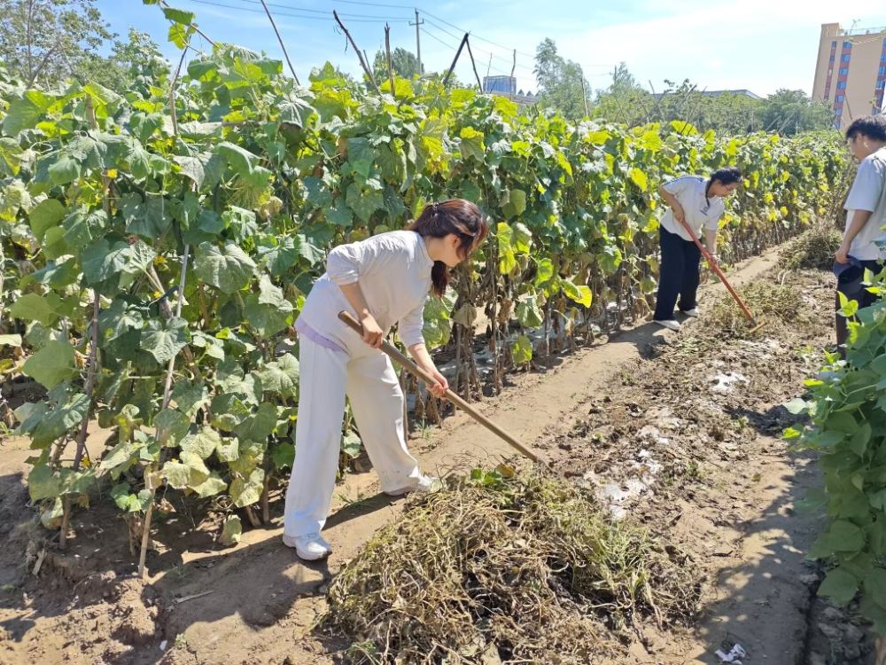 抵达张马屯村后,实践队迅速与村民们打成一片,深入田间地头,全身心投入农业劳作。队员们跟着村民学习翻地耕种,初次拿起农具,大家动作生疏,面对坚硬的土地,铁锹似乎也不听使唤。村民耐心地手把手教学,从握锹姿势到发力技巧,毫无保留地分享经验。在炎炎烈日下,队员们的汗水滴落在土地上,经过数小时的努力,原本杂乱的土地变得整齐有序,一道道土垄排列整齐,队员们也逐渐掌握了农耕的基本技能 。