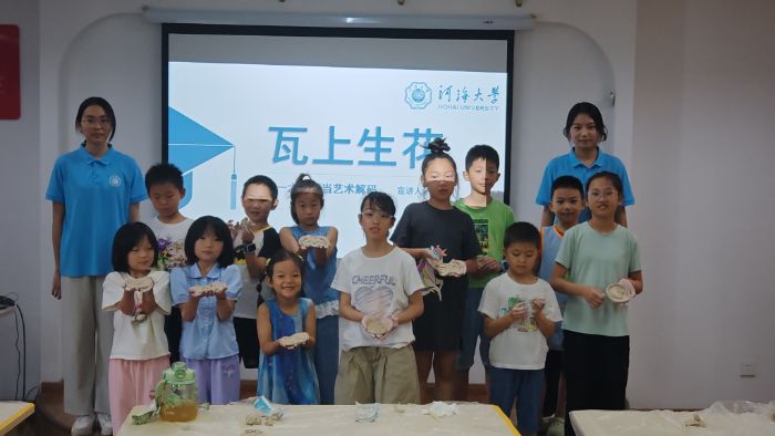 7月1日至7月15日,河海大学外国语学院“译展六朝,创承非遗”金陵文化传习团以创新形式走进南京多个社区,开展了一系列别开生面的传统文化公益课程。在长山社区,团队精心设计了“六朝瓦当文化制作体验”课程,通过纹样解谜、陶泥塑形等互动环节,让小朋友们亲手触摸千年建筑艺术的密码。牛首社区的“六朝陶俑科普与沙画制作”活动则另辟蹊径,将传统陶俑艺术与现代沙画技法相融合,孩子们用五彩细沙再现青瓷伎乐俑的飘逸神韵,在创作中感受南北文化交融的六朝风华。
