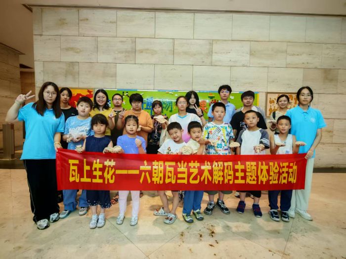 作为本次实践的重头戏,团队与南京六朝博物馆联合承办的“瓦上生花——六朝瓦当艺术解码”活动获得广泛好评。活动邀请大影壁社区10组家庭走进博物馆,在团队成员带领下,小朋友们近距离观察了馆藏珍品——从梁代莲花纹到陈代兽面纹瓦当,通过实物观摩理解瓦当“护檐头、彰华彩”的双重功能。讲解环节中,团队特别设计了“纹样侦探”游戏,引导孩子们发现六朝博物馆标志与人面纹瓦当的渊源。最令人难忘的是陶泥制作体验,小朋友们将观察所得化为手中作品,一个个充满创意的瓦当泥塑,展现了传统纹样与现代审美的奇妙碰撞。