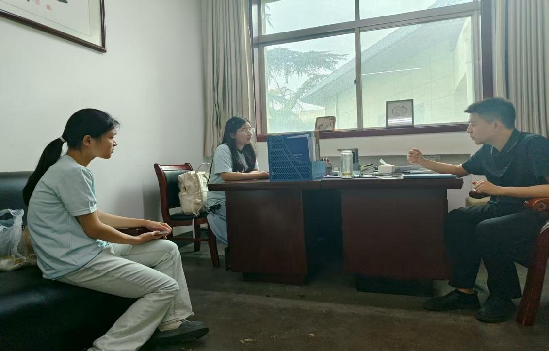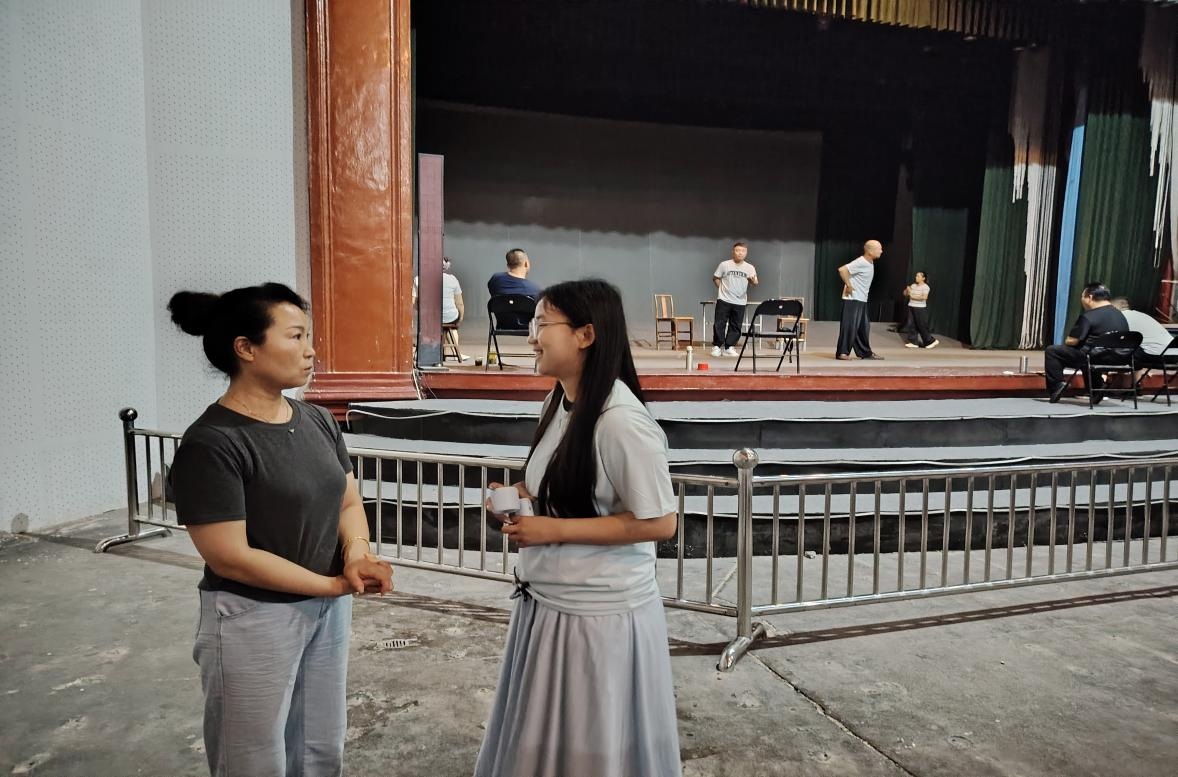 7月12日上午,团队拜访了大荔县县委副书记王伟霖和文旅局张硕主任,得到了他们对实践活动的大力支持,并获取了当地非遗传承人的联系方式。随后,团队与文旅局非遗股孟鸽股长对接,详细了解了大荔面花、刺绣等非遗项目的相关资料。下午,团队走访大荔传习所,与翟主任交流非遗传承现状;还拜访了同州梆子传承人申梅芳,恰逢剧团排练下周演出剧目,成员们实地观摩了传统戏曲的排练场景,感受传统艺术的独特魅力。