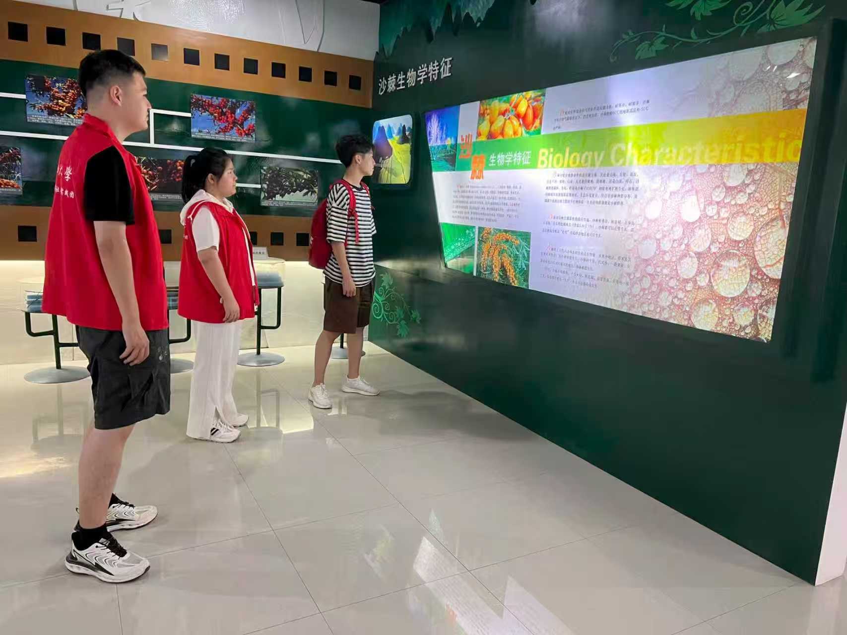 7月25日,实践团首站来到孙吴县沙棘展览馆。馆内陈列的老照片、生产工具与沙棘标本,串联起孙吴县沙棘产业的发展脉络。讲解员详细介绍了当地从 20 世纪 80 年代引种沙棘、治理水土流失,到如今打造“中国沙棘之乡”的历程。实践团成员孙令尹在参观后表示,老照片与工具勾勒沙棘产业路,从八十年代引种治土到成标本,见证生态护佑经济,奋斗写就振兴篇章,心生敬佩。