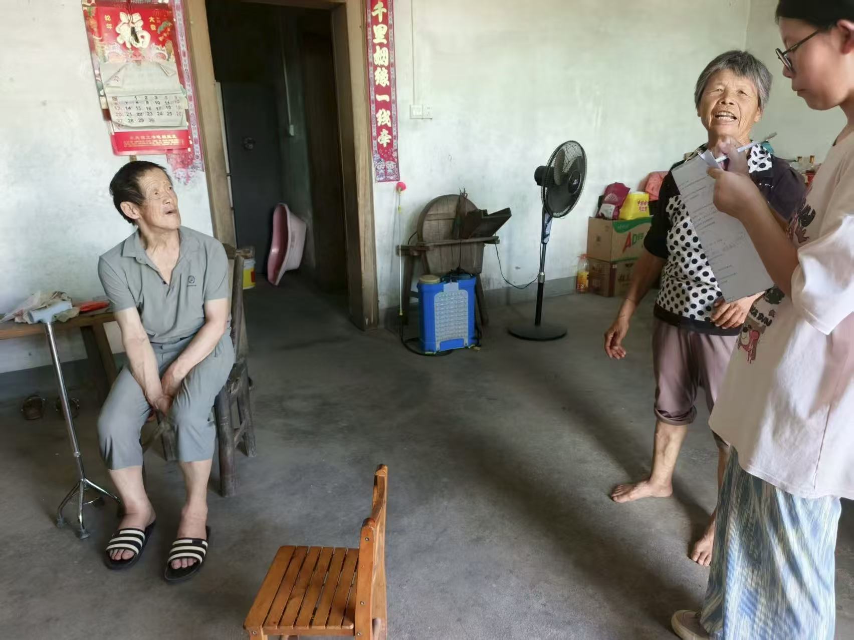 在湖北省英山县,实践团队以科学采样为基础,精心选取了具有代表性的四个调研点位:英山县黄家塆村、东夹铺村、蛇龙尖村以及孔家坊乡农村福利院,覆盖了分散居住与集中供养的不同场景。团队成员深入这些点位,严格依循流程,成功完成了对12位处于不同失能等级老人的入户精准访谈。访谈中,队员们特别关注乡村老人获取专业照护服务的便利性、经济可负担性以及家庭照护者承受的压力等实际问题。他们逐一核对问卷细节,详细记录老人在洗澡、进食、就医、康复等方面的具体困难以及社会福利政策落地的感受。每一份翔实的问卷记录、每一次深入的沟通,都成为清晰定位乡村失能老人照护体系现存薄弱环节的关键数据点。这次系统布局的调研,为科学分析县域及乡村地区失能老人的精准服务需求提供了坚实的实证基础。