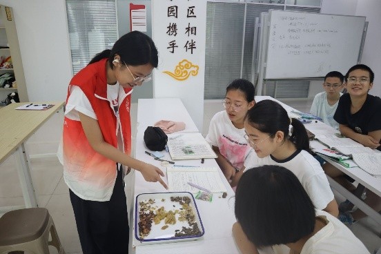 专业明炬提灯行,安全警钟心长鸣。团队始终秉持“健康第一”的服务理念,充分发挥医学专业优势,将健康科普化为生动课堂,传递关怀与希望。心肺复苏课上,孩子们以稚拙手势全力按压,初探生命守护之道;创伤包扎课中,队员们一对一、手把手指导,同学们持绷带认真缠绕,习得安全自护之技;健康科普课堂,日常健康知识化作有趣事例,深深印入纯真脑海;气道梗阻急救课,海姆利克急救法被反复演示,孩子们环抱模拟,牢记者生命的拥抱;口腔卫生讲座,正确刷牙成为焦点话题,细心引导助力良好习惯;中医启蒙课里,草药清香弥漫课堂,孩子们辨识百草、轻触脉象,感受传统医学的博大与奇妙。