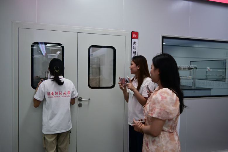 初识武冈卤香的魅力后,队长马金芹带领着“卤香筑梦青年团”成员走进当地食品企业,感受这座以美食出名的城市对食品企业的影响,在乡乡嘴企业管理人员的介绍下,成功认识到了一个优秀的食品企业不仅拥有成熟且独特的加工工艺,能有效保留食品的营养成分、口感和风味,建立完善的质量管理体系,从原料进厂到成品出厂,对每一个环节都进行严格检测和监控。