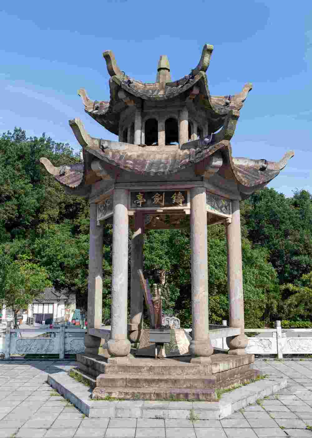 团队首先沿冶父山西门石阶路探访欧冶子铸剑池,实地感受这片承载着春秋铸剑文明的历史遗迹。合掌石的剑痕沟壑泗横,铸剑亭的飞檐下古人淬火锻剑声铿锵绕梁。队员们通过查阅地方志文献、走访景区商贩,详细梳理欧冶子在此为楚王铸剑的传说脉络,记录“龙泉淬火”“试剑劈石”等典故的民间传承版本,理解其作为“冶父山镇最早有文字记载古迹”的历史价值。