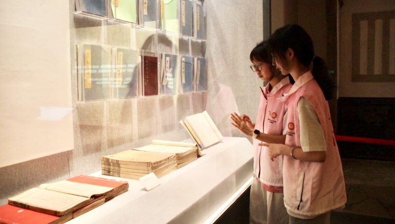 图为实践队队员在“漳台一家”展厅参观闽台族谱