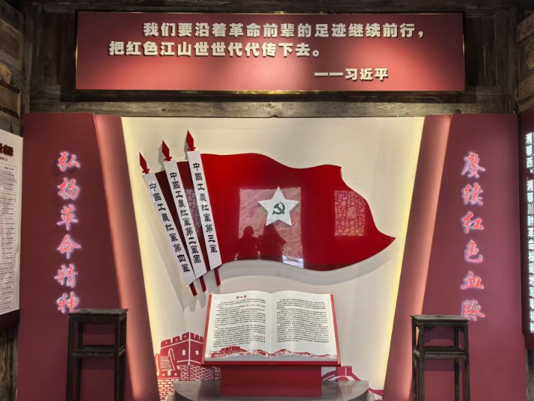 团队成员们跟随讲解员的脚步,步入第一展厅。头顶上,写有习主席语录“我们要沿着革命前辈的足迹继续前行,把红色江山世世代代传下去”的牌匾格外醒目,让成员们深感责任在肩,更加坚定了“继承先烈志,振兴湘鄂边”,为社会主义事业发展贡献力量的决心。