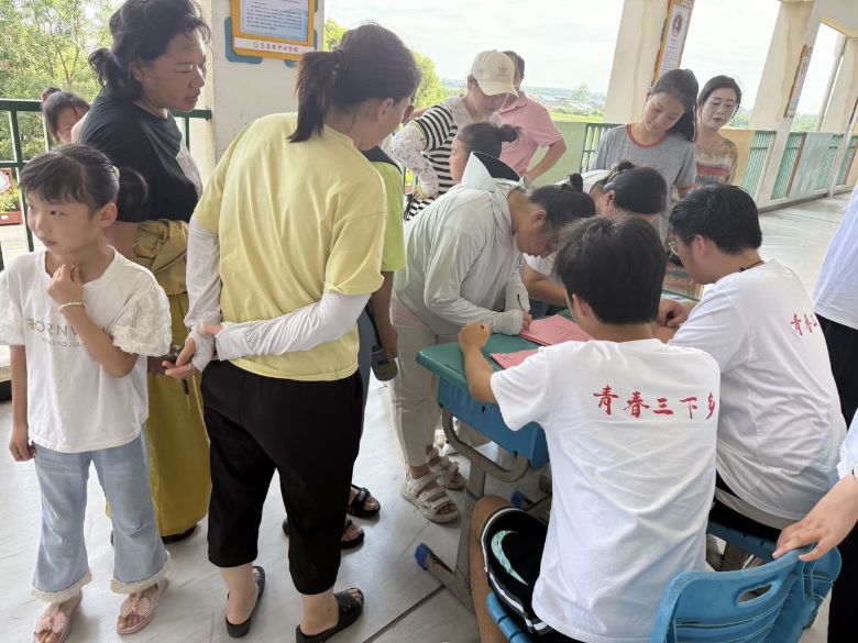 当日中午,团队顺利抵达高店镇。简单的休整后,成员们很快就投入到暑期少年宫的筹备工作中。下午两点三十分,破冰活动在少年宫如期举行,现场气氛热烈。60余名孩子在家长的陪同下踊跃报名,团队成员们顾不上擦拭额角的汗水,以饱满的热情接待每一位学生和家长。