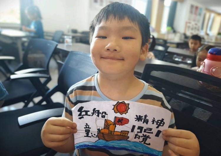 “红船代表着中国共产党的诞生,它是中国历史上开天辟地的大事变,就像一个刚出生的宝宝,虽然幼小,但却有着无限的希望和力量!”老师生动的讲解让学生们对党的历史有了初步的认识。