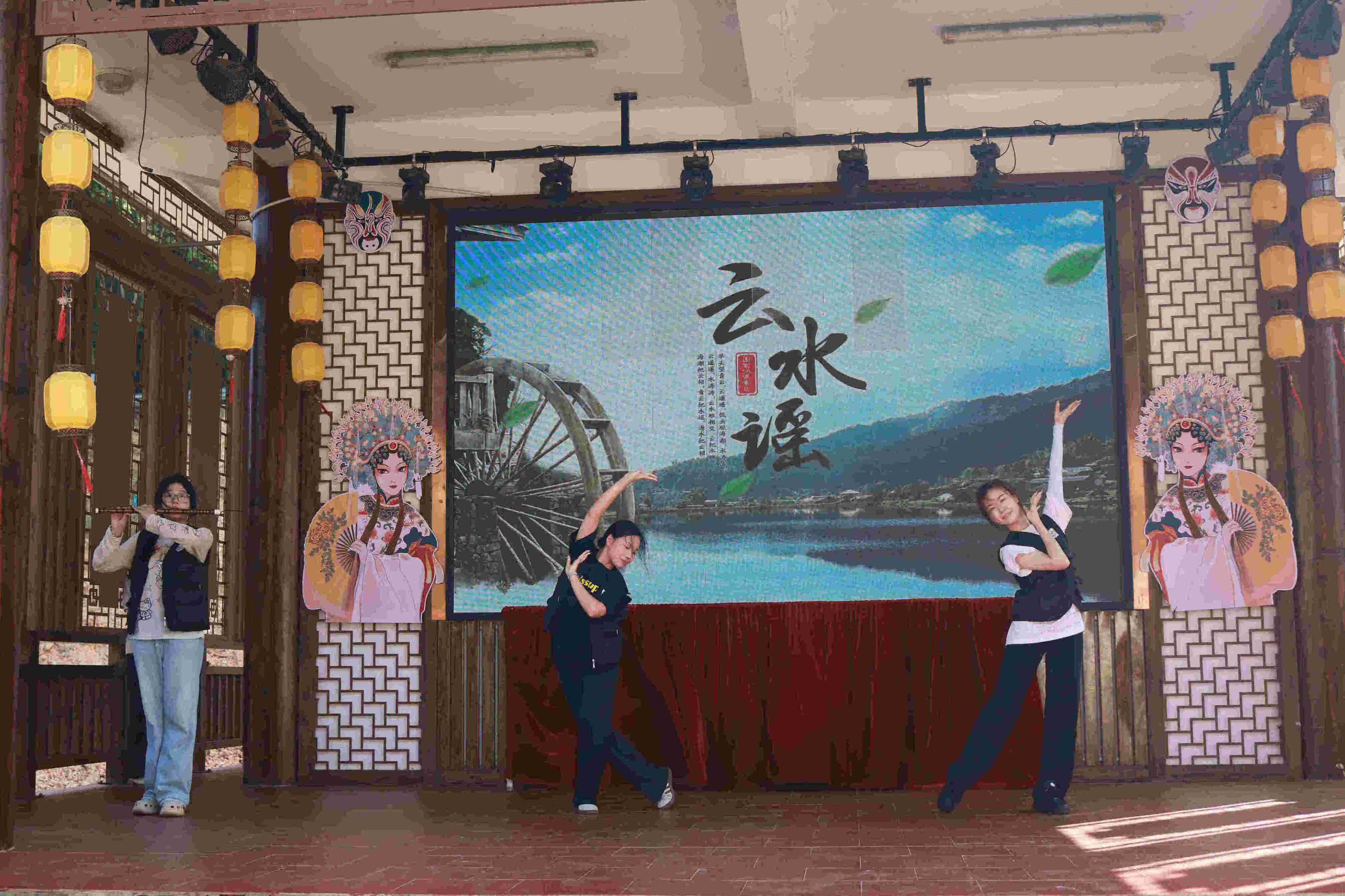 傍晚时分,“艺韵流芳”实践队走进云水谣古村落,在充满历史韵味的戏台上,为当地居民和游客带来了一场融合舞蹈、唱歌、竹笛演奏的精彩表演,以艺术之美传递青春力量,在古村的青砖黛瓦间奏响新时代的文化乐章。