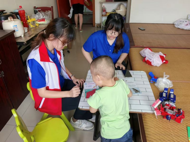 实践团开展特色入户课程,考虑到基地儿童情况各异,在系统掌握受助儿童身体状况、学习能力等基础信息后,采用灵活的教学方式。同时,组织开展辅助站立训练,实现康复训练与基础教育的有机结合。实践过程中,成员通过通俗易懂的语言讲解知识,引导儿童在轻松氛围中参与学习,激发认知兴趣。