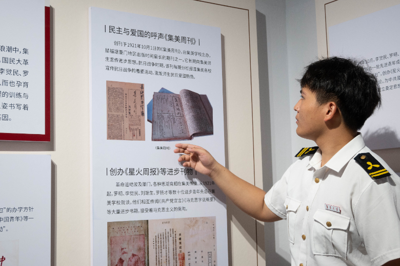 踏入集美大学中山纪念馆大门,队员们仿佛穿越时空隧道,走进那段波澜壮阔的岁月。一件件承载着历史记忆的老物件、一幅幅珍贵的老照片,生动展现着集美大学在党的关怀下、在嘉庚精神指引下从筚路蓝缕走向蓬勃发展的历程。