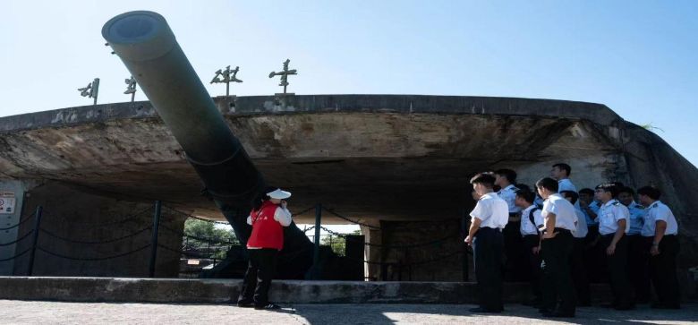 (图为“赤旗领航”实践队在观看克虏伯巨炮 通讯员裴李卓轩供图)