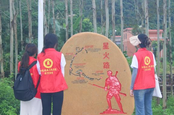 为深入学习习近平新时代中国特色社会主义思想,进一步增强,思想建设与党性修养,从革命历史中汲取奋进力量,坚定理想信念,7月2日,仲恺农业工程学院经贸学院青耘逐梦青年突击队前往佛冈县高岗镇红色革命老区宝山村,走访红色景点,了解红色故事。