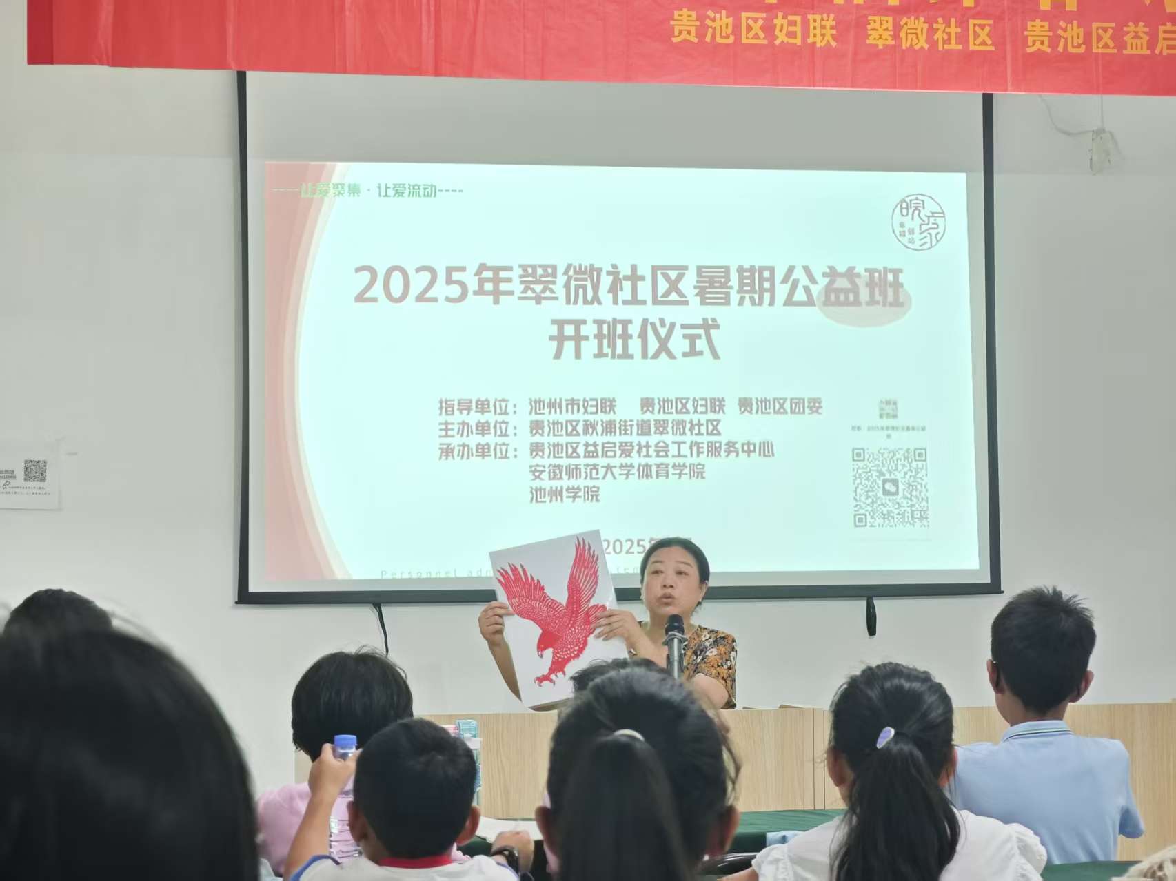 为助力社区发展,关爱儿童成长,2025年7月5日,翠微社区 “皖家幸福驿站” 系列活动暨大学生暑期三下乡开班仪式在社区活动场地正式启动。此次活动由翠微社区、贵池区益启爱社会工作服务中心、赴池州市翠微社区志愿服务实践团联合开展,吸引众多社区儿童及大学生志愿者参与。