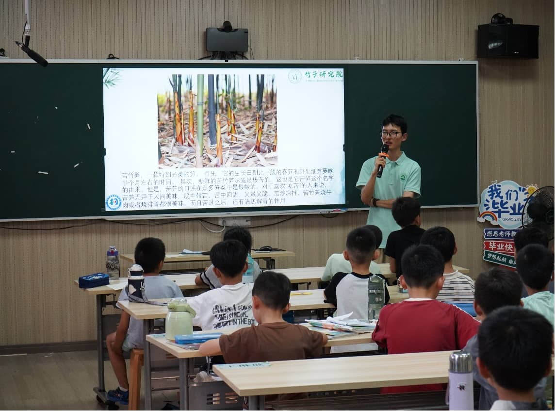 实践团成员为孩子们带来了“竹之最:探索竹子的奥秘”课程,介绍了世界上最奇特的竹子、不同竹子品种的竹竿与竹笋,以及竹子生长过程与结构。课程上孩子们积极回应实践老师,踊跃回答问题。新奇的内容,有趣的互动,孩子们对该课程越发专注与喜爱,激发了孩子们对竹子以及后续课程的兴趣。