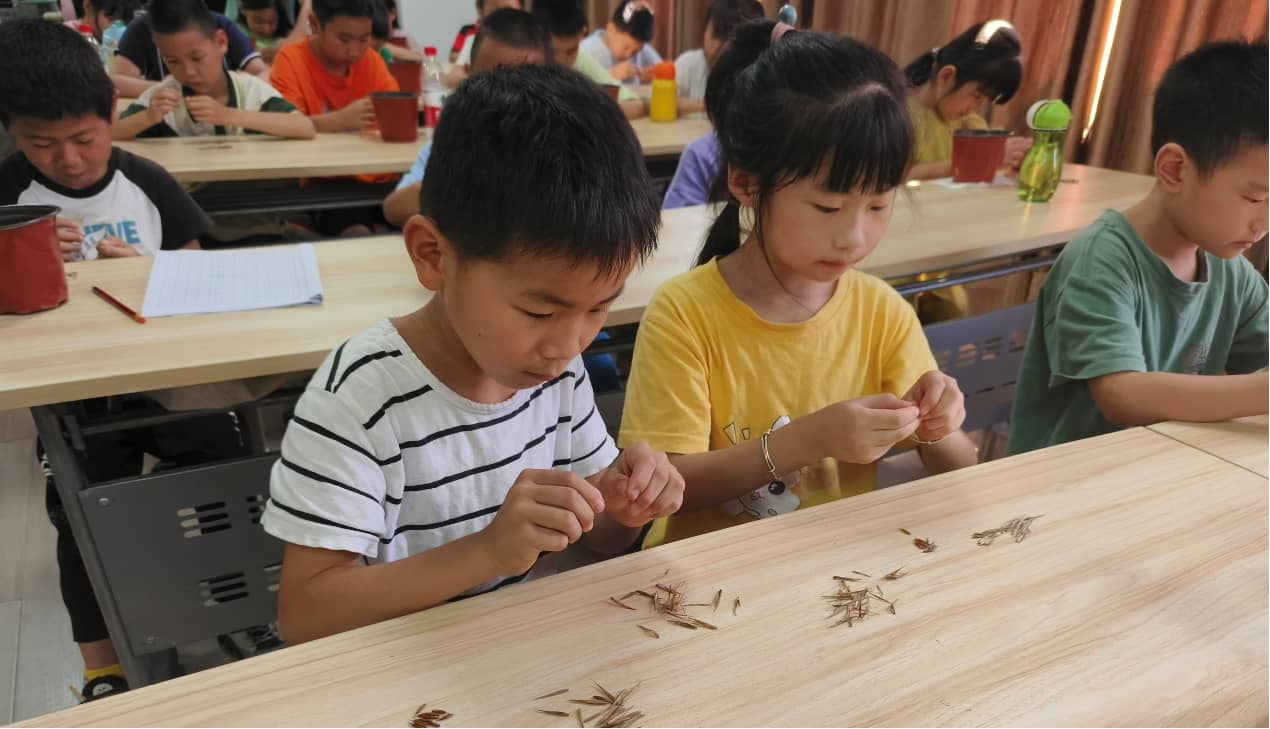 课堂上,孩子们在实践团成员的指导下剥开一粒粒竹种的外皮,了解竹种结构的秘密,待回家后将小小的种子种入土壤中,期待几周之后种子萌发破土而出。“老师,它什么时候会长出来呀”“老师,我可以多带一些子带回家养吗”,大山里的科学教室回响着孩子们充满求知欲的提问。“识竹米,播竹种”活动引起了孩子们的热烈反响。