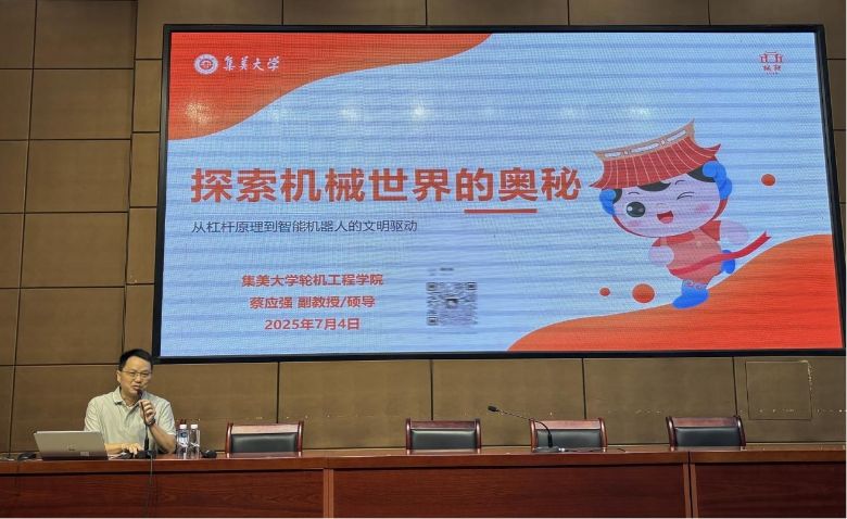图为蔡应强老师以《探索机械世界的奥秘》为题开展讲座(集美大学供图)