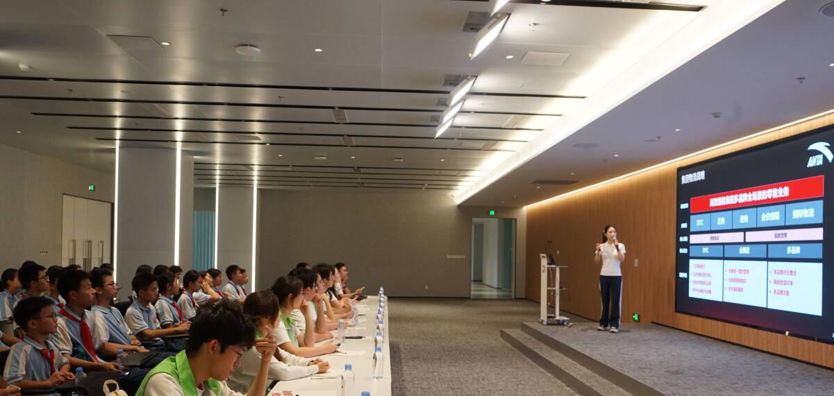 下午,实践队与其他学校学生代表走进安踏一体化物流园,实地感受智能智造的强劲效能。物流园工作人员详细讲解了智能化设备的运营流程,以及安踏物流的数字化转型布局。