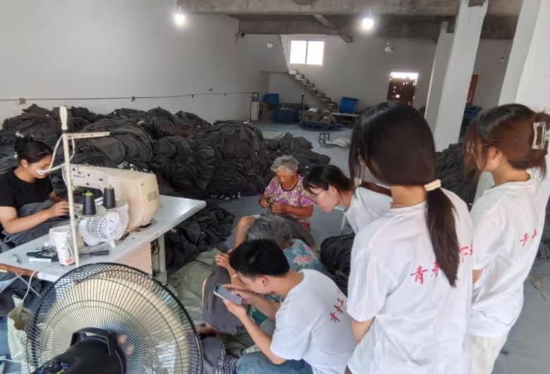 除了入户走访,队员们还走进乡村车间,关注乡村务工人员的健康卫生状况。在车间里,队员们与务工村民交流工作环境中的健康影响因素、职业健康防护知识掌握情况等。针对车间相对封闭、人员密集等特点,队员们向务工村民普及通风换气、个人卫生防护等知识,提醒他们在忙碌工作中也要关注自身健康。