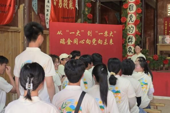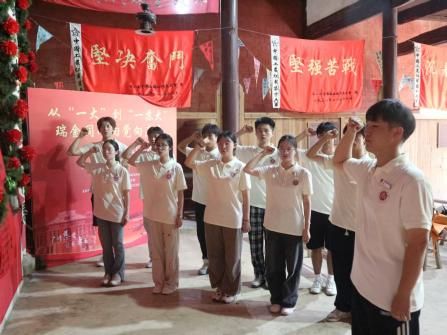 在中华苏维埃共和国临时中央政府会址内记录着那段波澜壮阔岁月的展板前,实践团成员们久久驻足,沉浸其中。怀着对革命先烈的深切缅怀,全体成员庄严肃立,高举右拳,重温入团誓词。铿锵的誓言在革命旧址中久久回荡,这既是对先辈的崇高致敬,更是新时代青年传承红色基因、勇担时代使命的青春宣言。